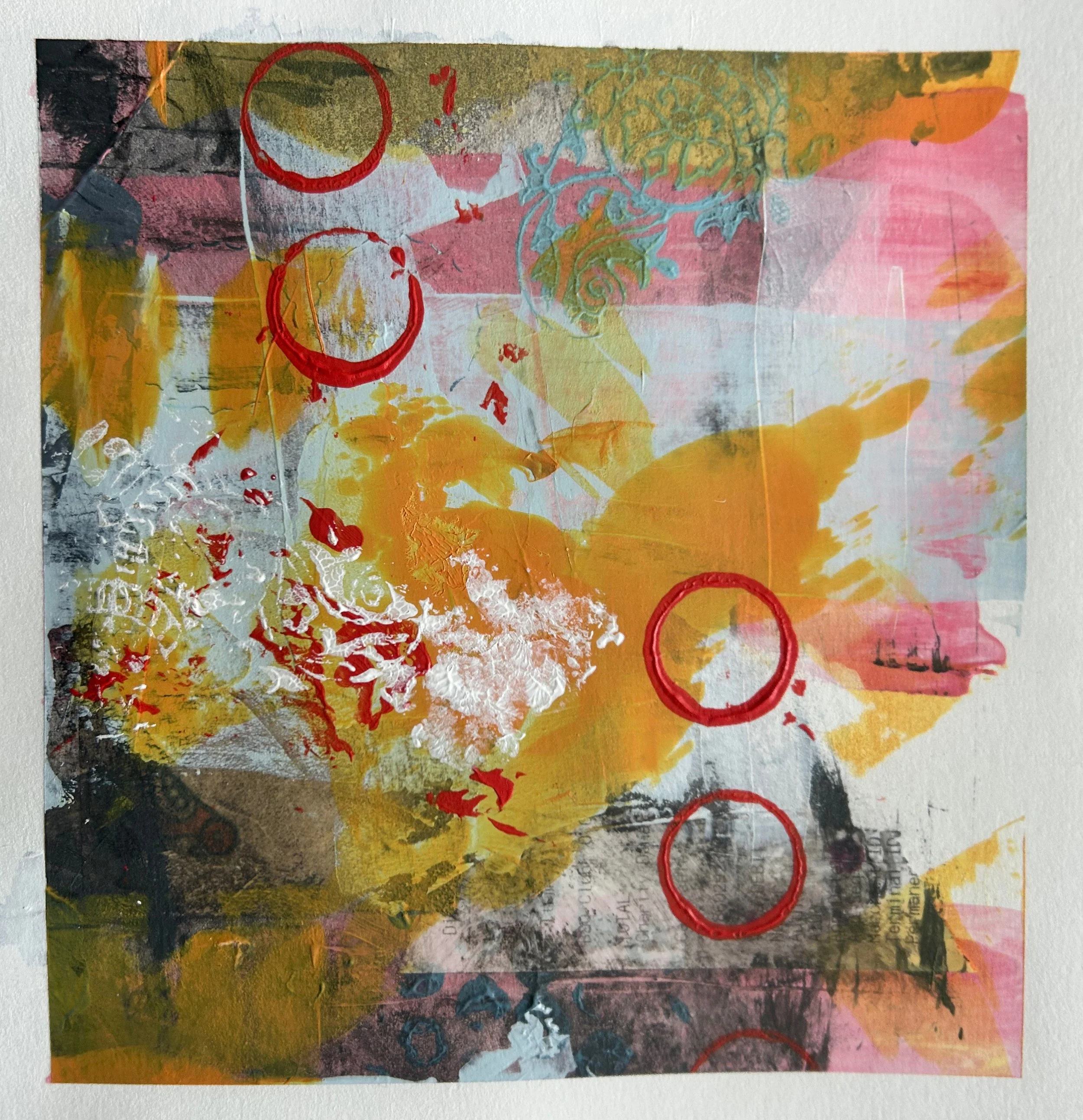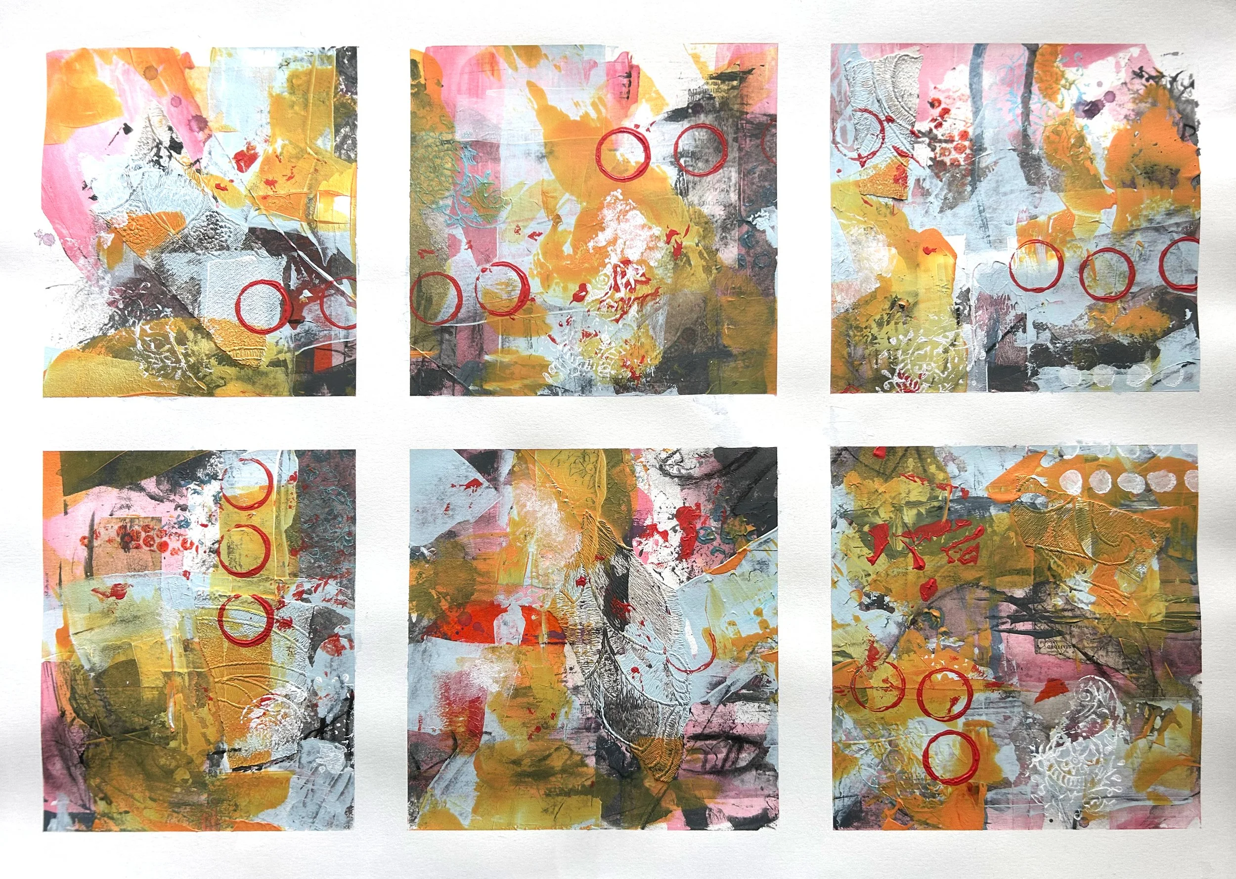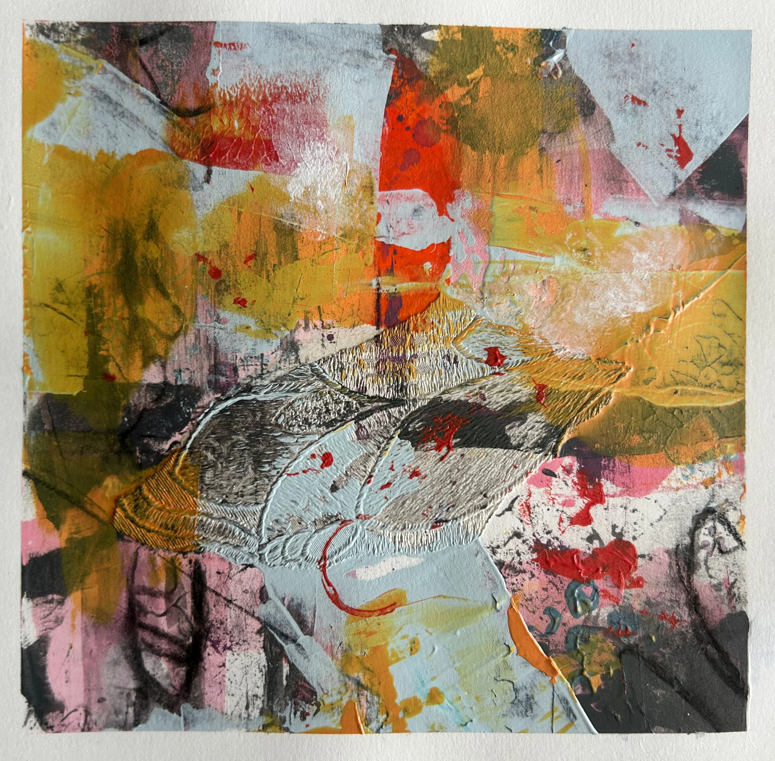 More sketchbook work made by sectioning a larger piece of paper into a grid. I liked how the colours worked here, again a limited palette. The collaged wallpaper worked really well so I used it again in our Christmas cards.
