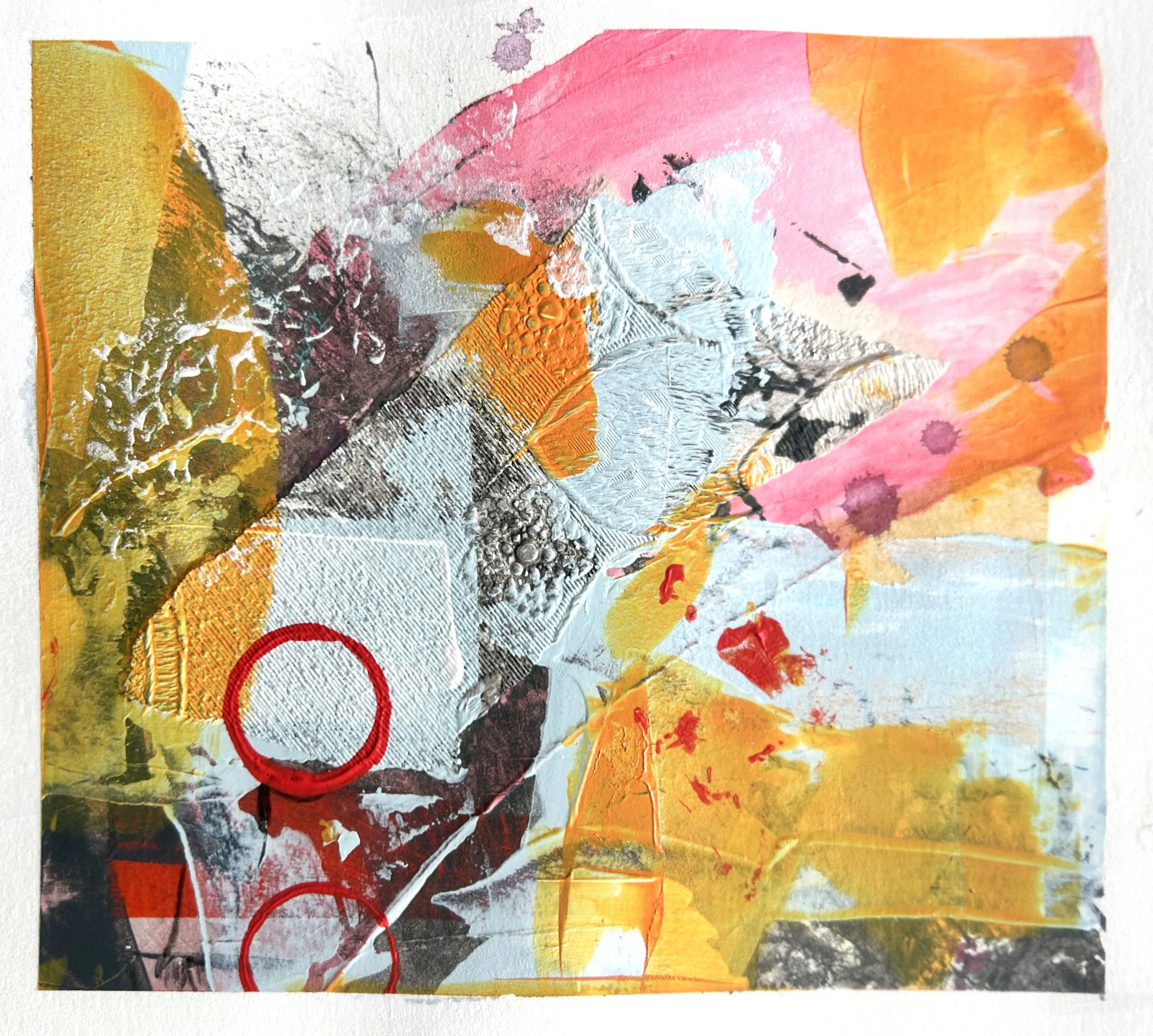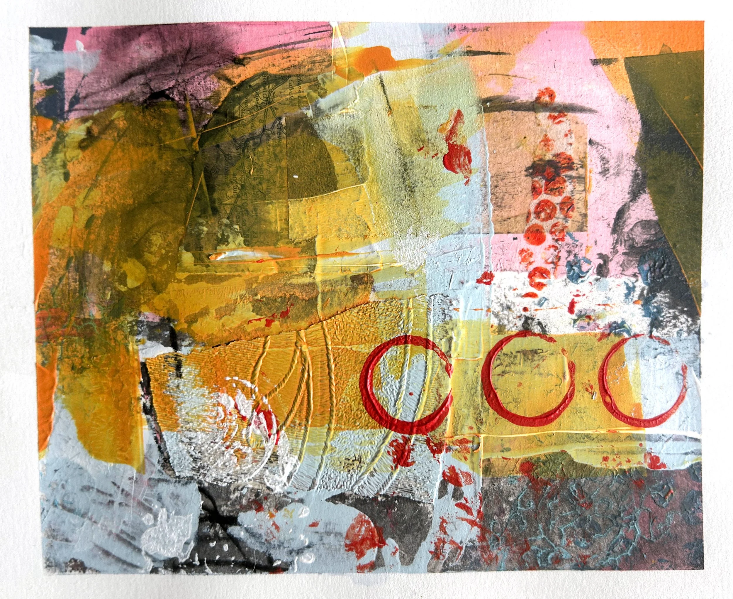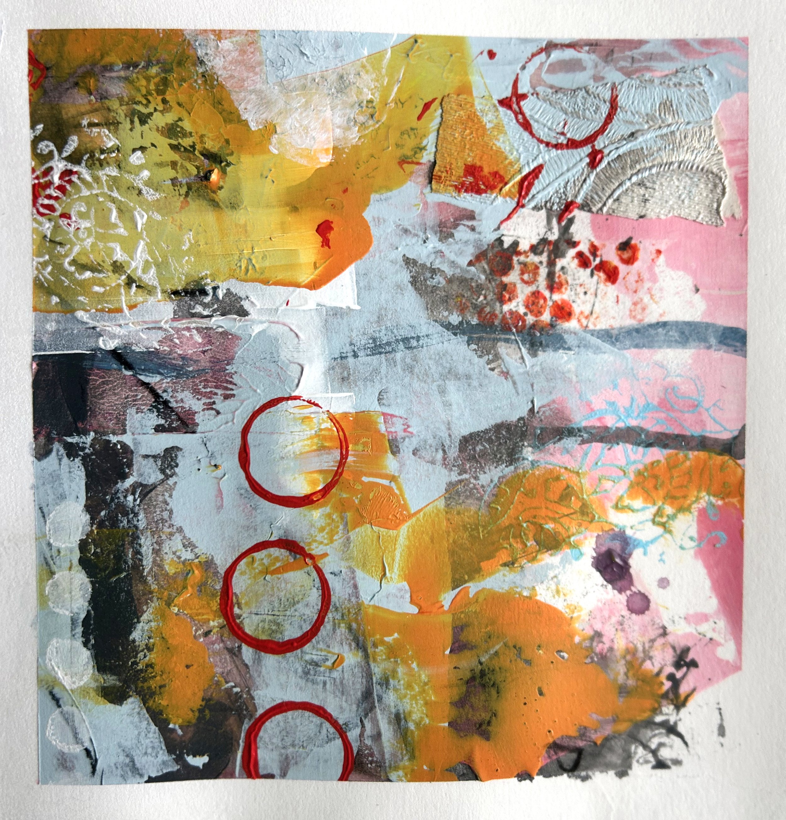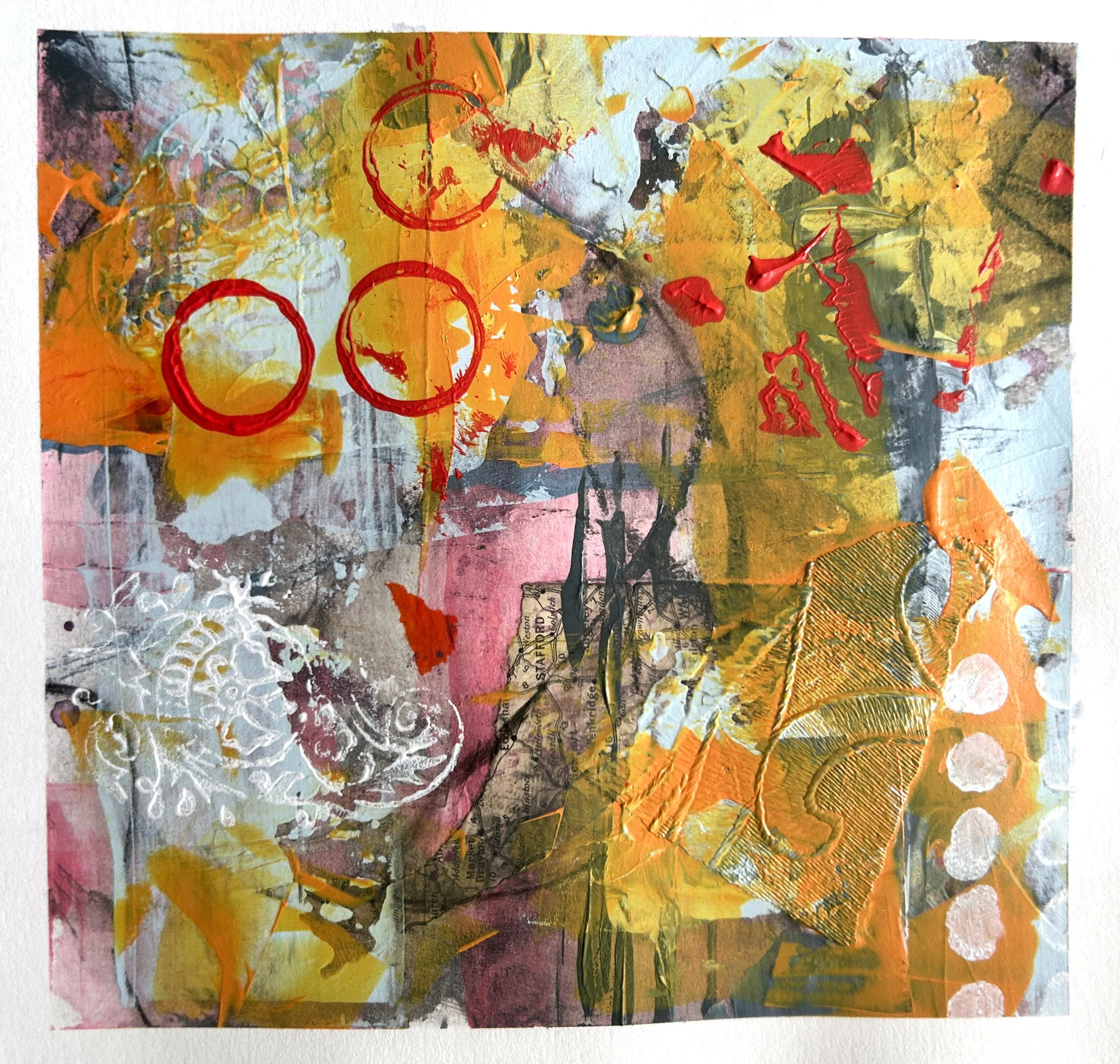 More sketchbook work made by sectioning a larger piece of paper into a grid. I liked how the colours worked here, again a limited palette. The collaged wallpaper worked really well so I used it again in our Christmas cards.