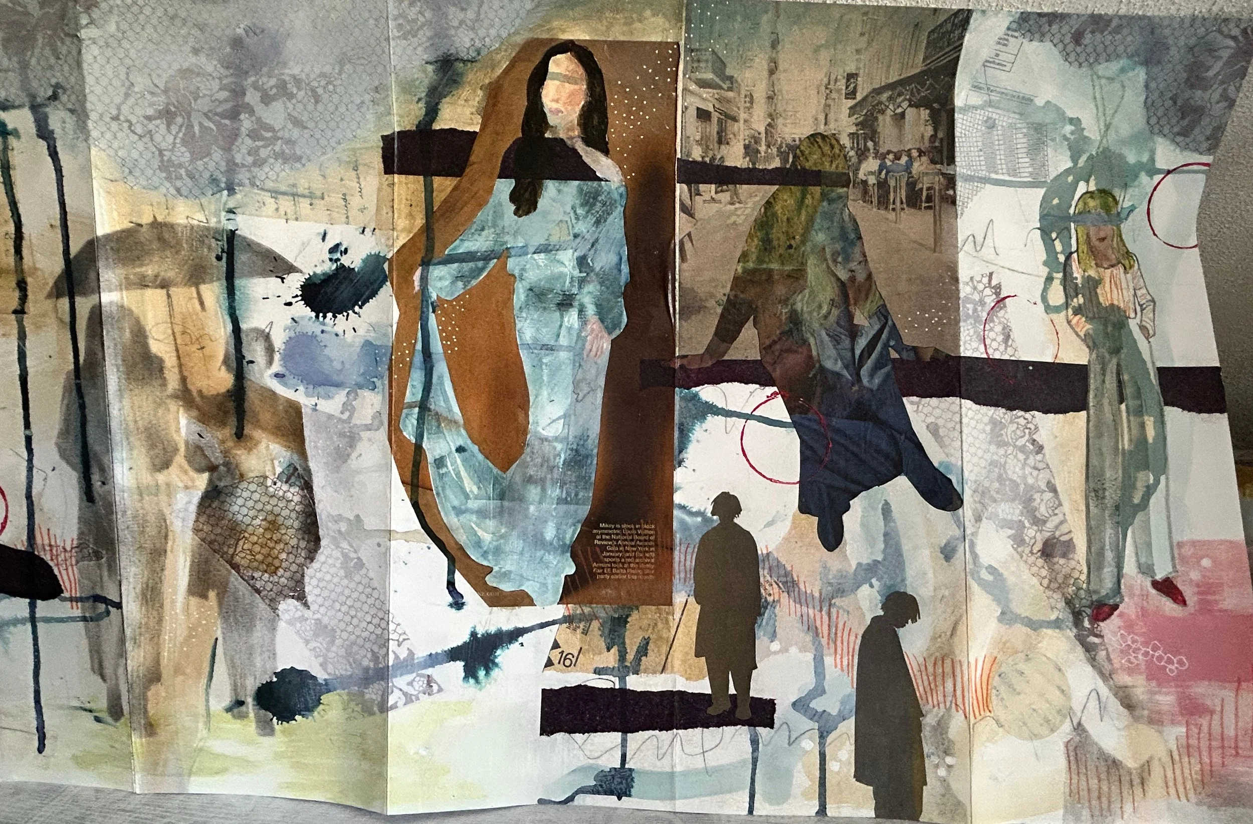 Sketchbook extracts heavily inspired by magazine photos. Exploring different ways of reproducing figures with the fantastic Karen Stamper concertina sketchbook courses. Will definitely do more concertina work.